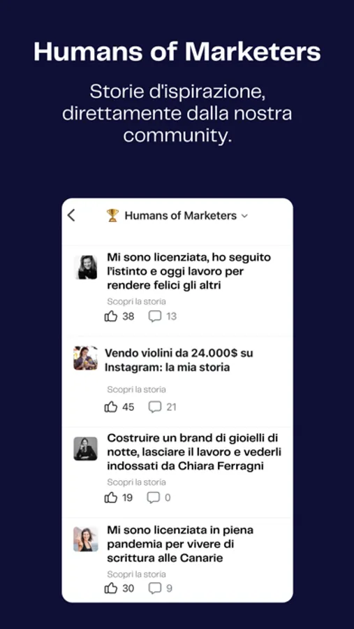 5 - Lavoro. Metti in risalto le tue competenze nella community e candidati per lavori da remoto sulla Job Board di Marketers. Nuovi clienti o progetti sono sempre a portata di click!
