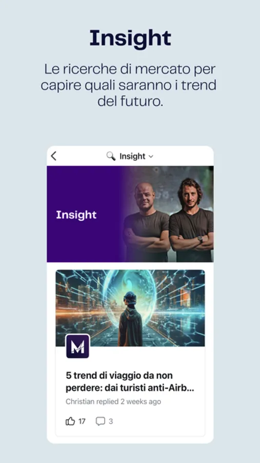 4 - Insights. Accedi ai Marketers insight, sono le stesse ricerche di mercato che utilizziamo all’interno della nostra agenzia per capire quali saranno i trend del futuro.