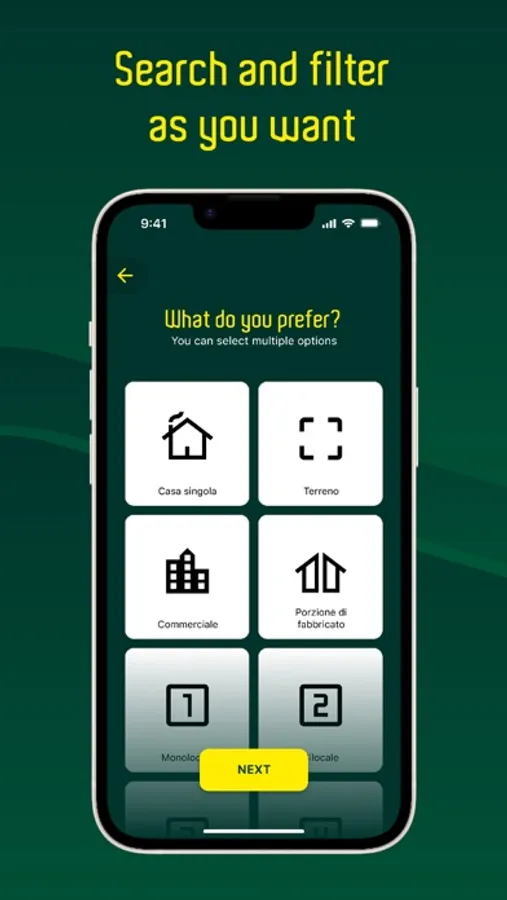 - Potrai selezionare i tuoi criteri di ricerca in base a Comune di interesse, Tipologia di Immobile, Prezzo e Budget a disposizione