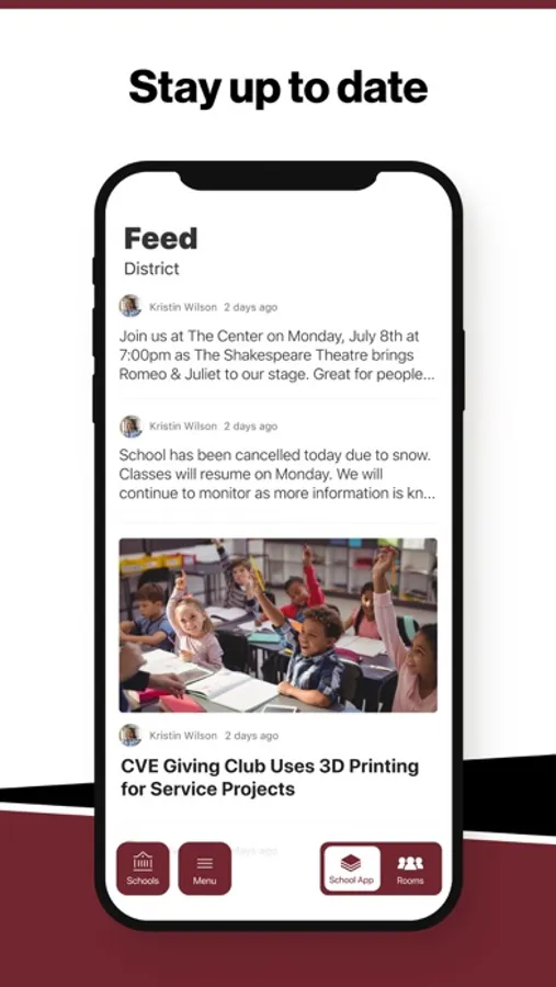 In the Live Feed is where you'll find updates from the administration about what's going on in the district right now. Whether that's celebrating a student's success, or reminding you about an upcoming deadline.