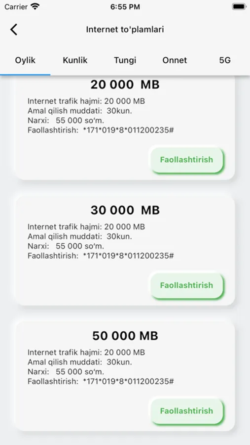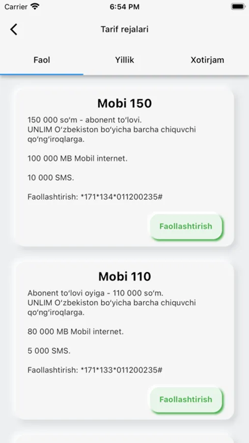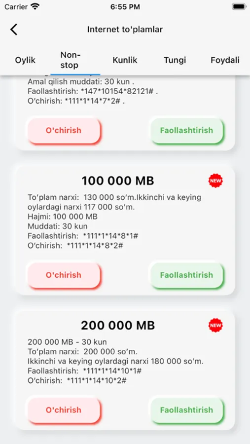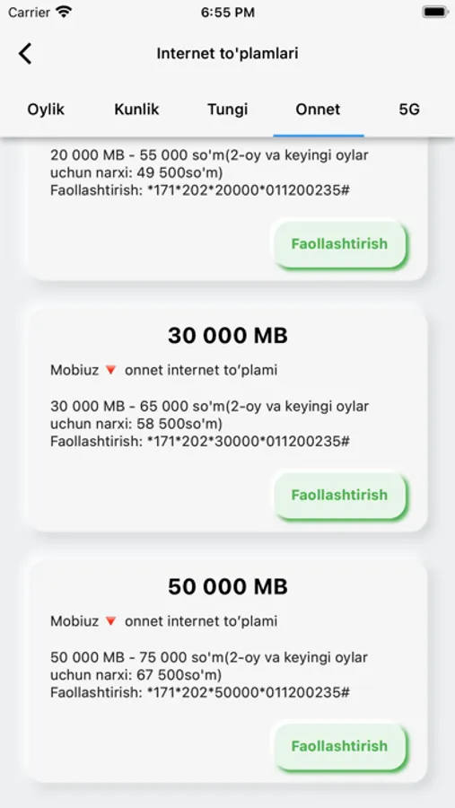 SMS Daqiqa USSD kodlar qo'shimcha xizmatlar va savol javoblar.