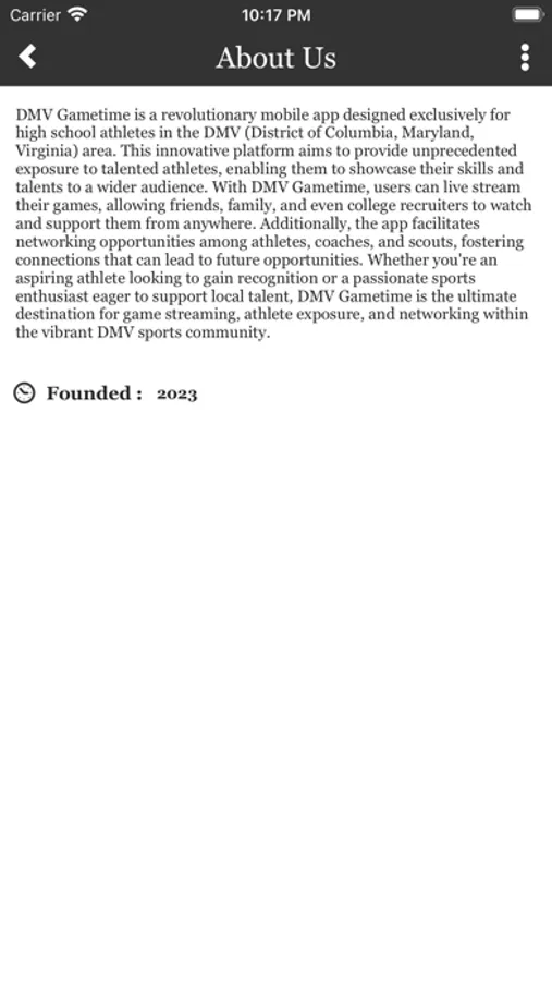 DMV Gametime is a mobile app created to give exposure to athletes in the D.C , Maryland & Virginia area. This app will allow you post , comment and view highlights . There will also be open run time and locations listed as well