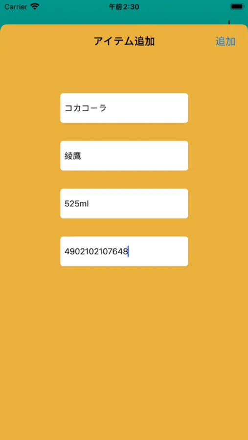 インフォボタンを押すとデータを追加する際にアイテム追加したい場合、簡単に項目を修正する事で入力を省略して楽に登録する事が出来ます。