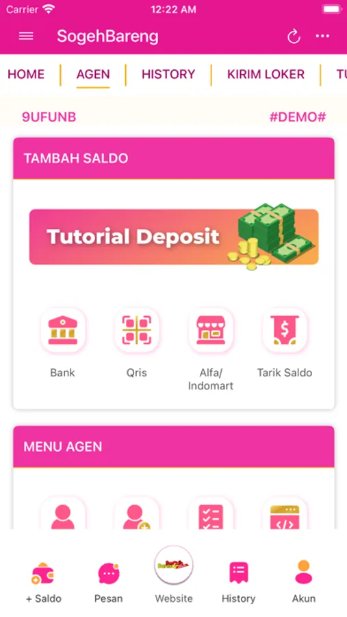 Aplikasi SugihBareng Comunity Agen menyediakan metode pengisian ulang deposit untuk kemudahan dan kenyamanan para Agen SugihBareng Comunity saat bertransaksi. Saat ini SugihBareng Comunity menyediakan pilihan metode isi ulang deposit melalui Virtual Account & Bank Transfer (BCA), Gerai Retail (Alfamart, Alfamidi, Outlet Pulsa21) dan BCA OneKlik.