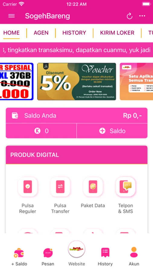 Pulsa Telkomsel Prabayar, Pulsa Indosat Prabayar, Pulsa Indosat Ooredoo Prabayar, Pulsa XL Prabayar, Pulsa Tri Prabayar, Pulsa Smartfren Prabayar, Pulsa Axis Prabayar, Pulsa Kartu Halo Pascabayar, Pulsa Smartfren Pascabayar, Pulsa Indosat Ooredoo Pascabayar, Paket Data Telkomsel, Paket Data Indosat Ooredoo, Paket Data XL, Paket Data Tri, Paket Data Smartfren, Paket Data Axis, Pascabayar Selelur, Tagihan Listrik, Token Listrik, BPJS Kesehatan, PDAM, TV Berlangganan, Gas PGN, Telkom, Indihome Speedy, Multifinance, Bussan Auto Finance (BAF), Mega Auto Finance (MAF), Mega Central Finance (MCF), WOM Finance, MPM Finance, Bima Finance, Radana Finance, PBB, Fitur Catat Utang, Fitur Kasir Warung, Fitur Atur Harga Jual, Fitur Agen Terdekat, Fitur Warung Online.