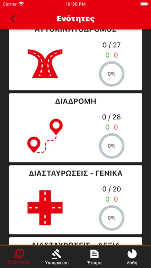 Mobile application of Driving School Yota and Theodore Chaftis to be used from students practicing for driving exams.