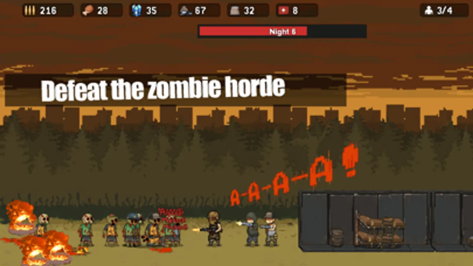 Defend your base and don’t let the hungry horde eat the living! Assault enemy bases on your way and set up the battle camp to your advantage. Gather your team of survivors and send them into battle, use any means necessary to ward off the horde of pixel crazed flesh eaters! Slash, shoot or burn the dead with barrels, Molotov cocktails, and grenades.