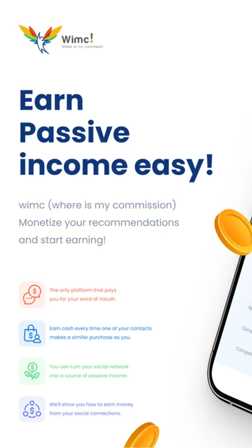 Wimc (Where is my commission) is an app that helps monetize your word of mouth. Have you ever recommended a restaurant or a product to a friend and they ended up trying it out? Did you earn a commission? No, Why not? you helped that business make money! Wimc helps you earn the referral commission whenever your friend makes a similar purchase.