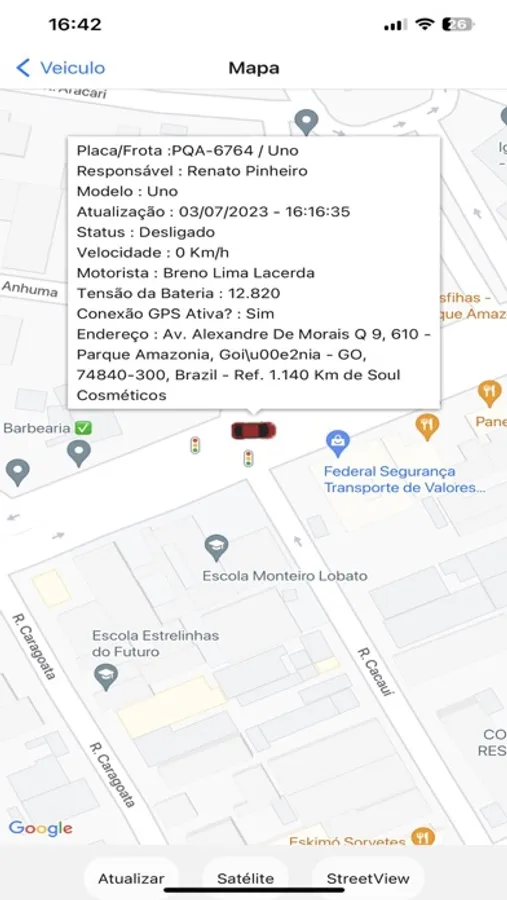 Através do recurso Street View disponível no nosso aplicativo fica muito mais fácil identificar a rua ou até mesmo o endereço em que seu veículo está!