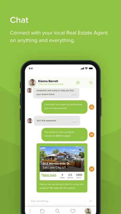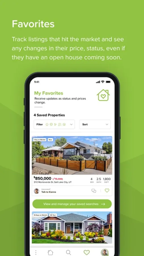 My Favorites: View saved searches and suggested homes with ease and connect with your agent for any questions.