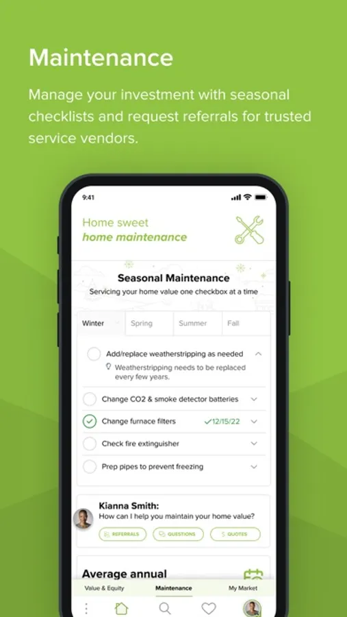 My Maintenance: Follow and complete home maintenance needs. Need a quick referral for some work for your property? Request trusted service vendors right from your agent.