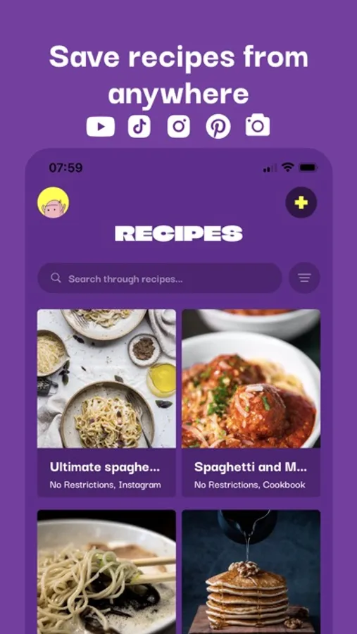 Save your family's favorite recipes from recipe websites, Instagram, YouTube, Pinterest, TikTok or by scanning cookbooks. Manage, search and filter all your recipes with our powerful inbuilt recipes search engine. Search through your recipes by title, source, diet, category and ingredients needed for the recipe.