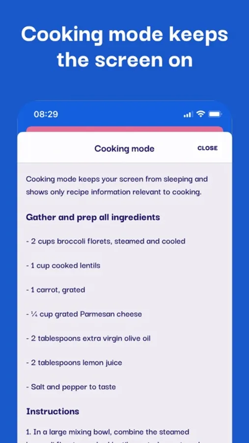 Cooking mode keeps the screen on and shows you only the information you need to cook. No more tapping to unlock your phone while your hands are busy cooking. Embrace the joy of no handsfree cooking and create Instagram-worthy meals.