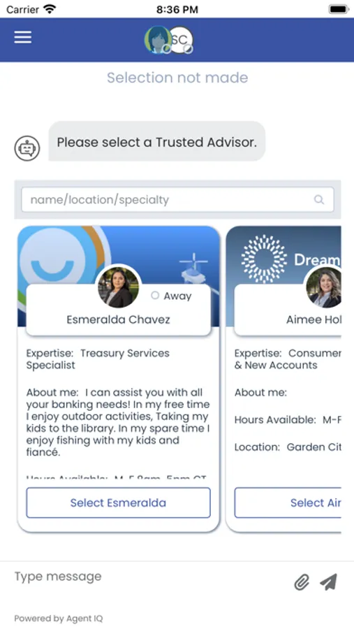 banker. Through our app, you get to pick an Advisor that’s right for you. Choose someone who shares