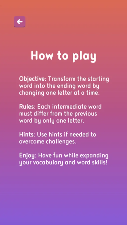 ◆ Objective: Transform the starting word into the ending word by changing one letter at a time.