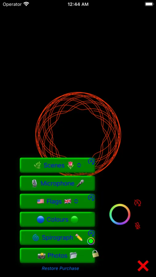 5) A mesmerizing spirograph theme, painting sublime patterns in chosen or random colors.