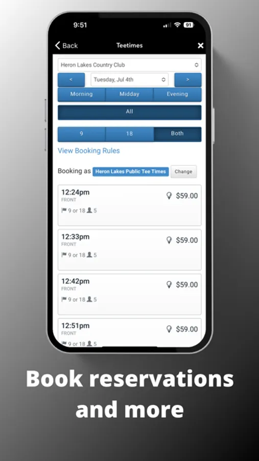 Browse, book, and pay for tee times straight from the Heron Lakes CC! Our app is the easiest way to book tee times, get answers to FAQs, stay updated with news and alerts, and so much more!