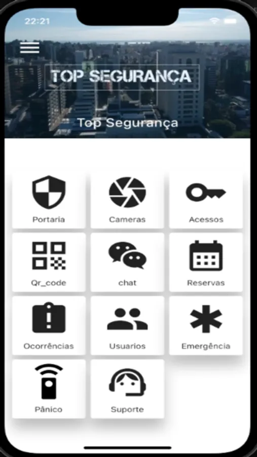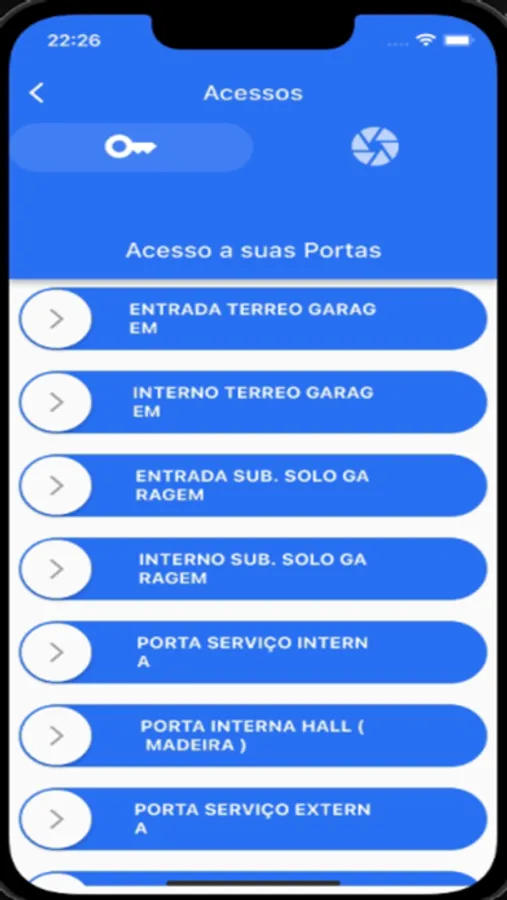 O sistema contempla acesso a camera de monitoramento e abertura de portões de modo automatico