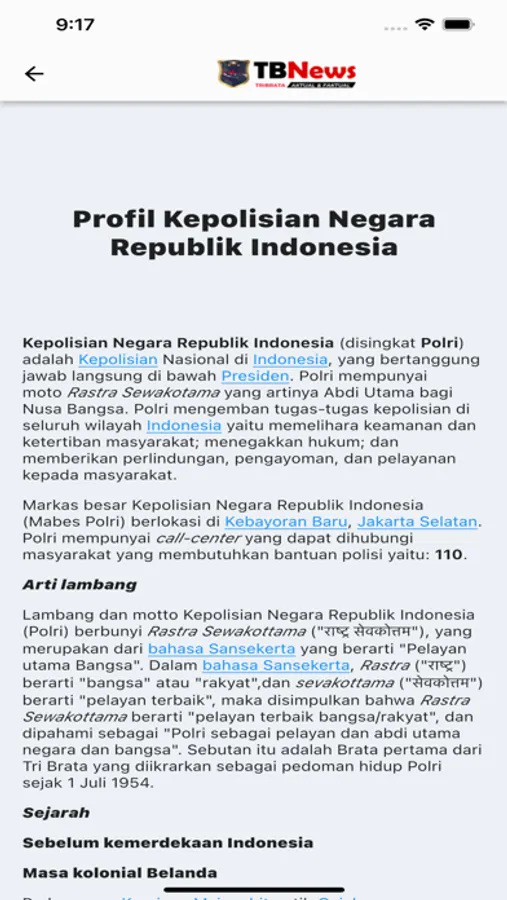 TBNews, adalah portal berita resmi Polri yang memberikan edukasi, sosialisasi dan literasi digital dan diharapkan mampu memberikan informasi kepada masyarakat sesuai dengan kejadian yang sebenarnya dan didukung dengan data yang akurat, sesuai taglinenya yaitu “Aktual dan Faktual”.