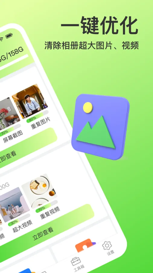 超大图片:扫描手机存储空间中单张图片容量过大的图片,此类图片一般是由于经过多次修图导致图片单体容量变大,不仅占用存储空间,通常发布后很少会再次使用到,建议选择性删除;