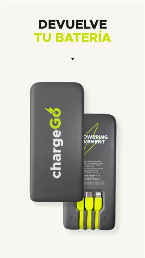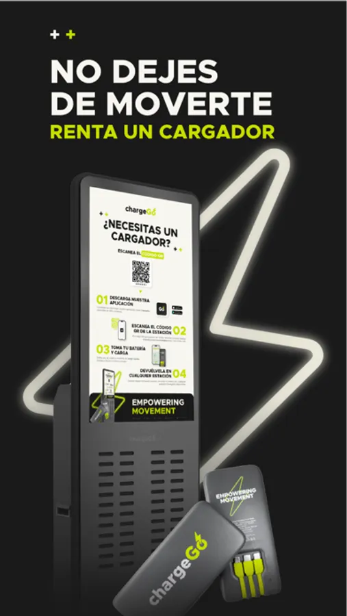 ¿Necesitas energía para tus dispositivos? ChargeGo es la solución ideal para mantenerte conectado en cualquier momento y lugar! Con nuestro servicio de renta de baterías portátiles de CARGA RÁPIDA, nunca más te quedarás sin batería. ¿Lo mejor? El primer minuto es ¡GRATIS! Después, solo $1 por hora/fracción, con un tope máximo de $5 al día. Recuerda, devuelve la batería dentro de las 48 horas para evitar un cargo adicional de $45 al reportarse como perdida.