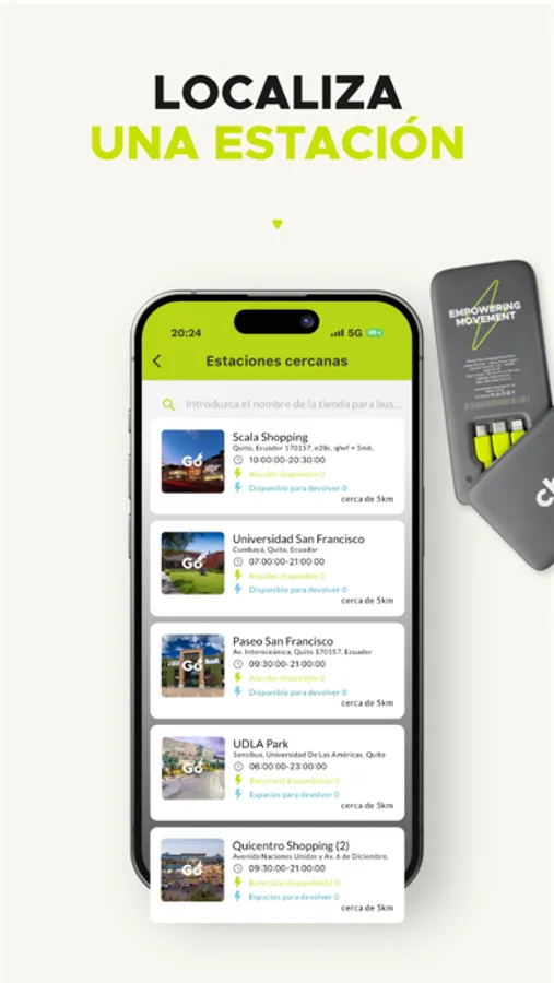 Devuelve la batería en cualquier estación, sin limitaciones. ¿Necesitas saber qué estación está más cerca o si hay baterías disponibles? Nuestra app te brinda información detallada sobre la disponibilidad de espacios y baterías en cada ubicación, y te guía directamente allí!