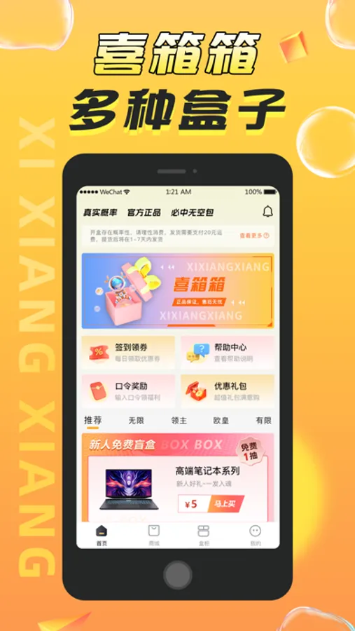 发现惊喜,【喜箱箱】APP带你进入神秘惊喜世界!这里有专属于你的盲盒体验!