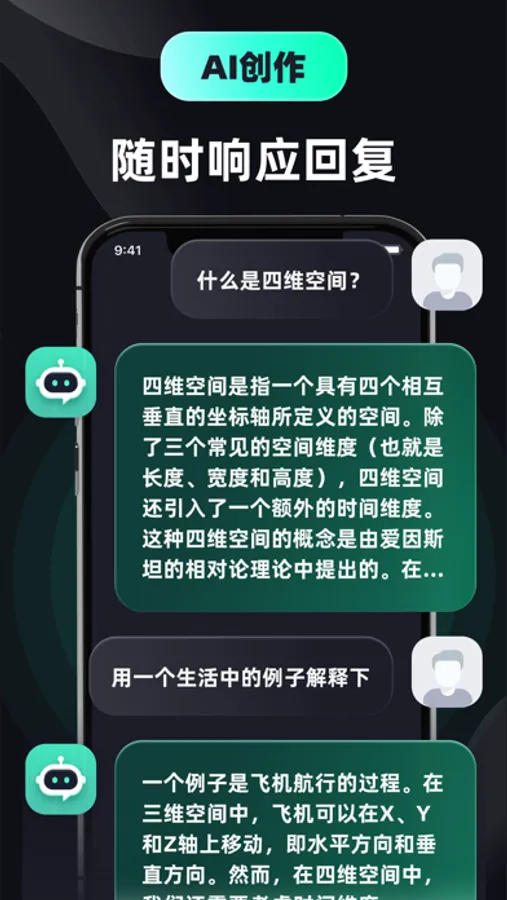 AI聊天:可以与您流畅的上下文互动,快速响应回复,时刻待命;