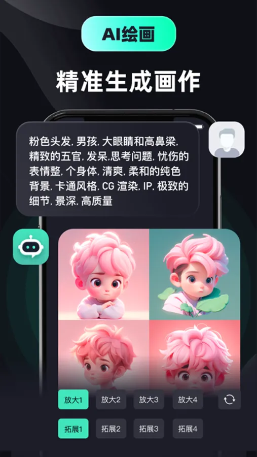 只要输入描述,Chat AI还可以生成相对应的图片,熟练的切换多种风格,创作属于自己的艺术品。