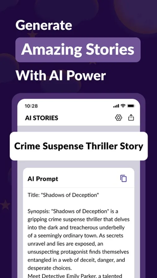 1. AI-Powered Story Generation: Let the app's advanced AI algorithms generate unique and engaging story ideas for you. With just a few taps, you'll have a well-crafted storyline to ignite your imagination.