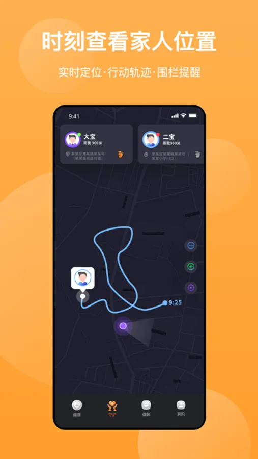 【守护】具备实时定位设备、SOS预警等安全功能,时刻守护用户安全。