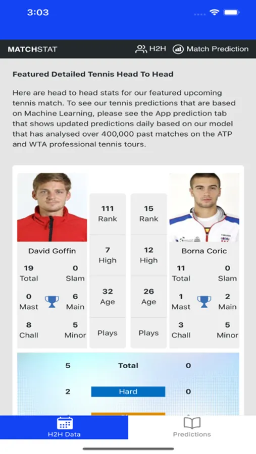 Please take the time to review our privacy policies and terms of use by accessing the menu at the top right of the page. By using our head to head Tennis Predictions application, users are agreeing to abide by these policies and terms. It is important to note that this application is not designed for gambling purposes, but rather serves as a sports information app that includes odds and tennis predictions, tips and picks. If you are interested in engaging in any online sports-related activities, please ensure that you comply with the relevant statutory laws in your country and consult licensed bookmakers. Please be aware that we do not assume any liability or offer any gambling capabilities through this application.