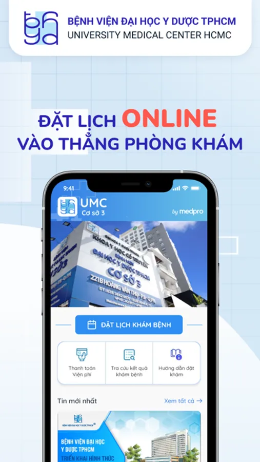 UMC3 - Đặt lịch khám bệnh là một ứng dụng đăng ký khám bệnh trực tuyến tại Bệnh Viện Đại Học Y Dược Thành Phố Hồ Chí Minh - Cơ sở 3. Đặc điểm nổi bật: