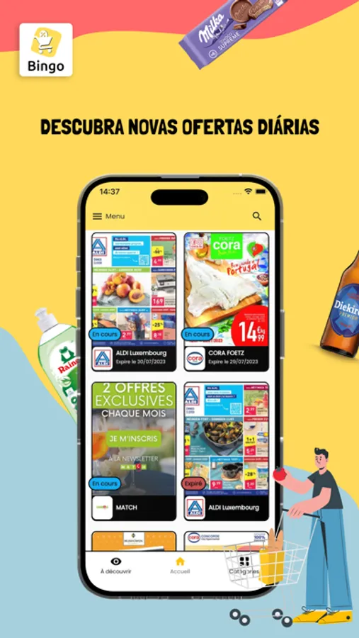 Com o Bingo, acabe com o desperdício de papel e caixas de correio lotadas todas as semanas! Encontre ofertas exclusivas imperdíveis e prepare suas compras graças aos catálogos das lojas ao seu redor.