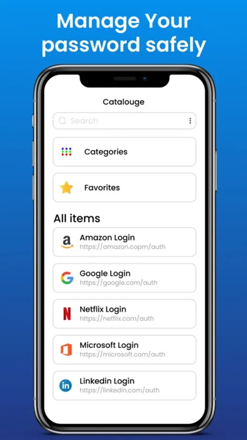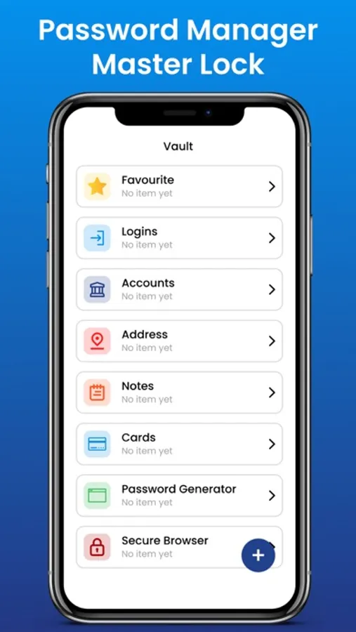 • Adapt your safe with customizable categories to keep all your information well organized.