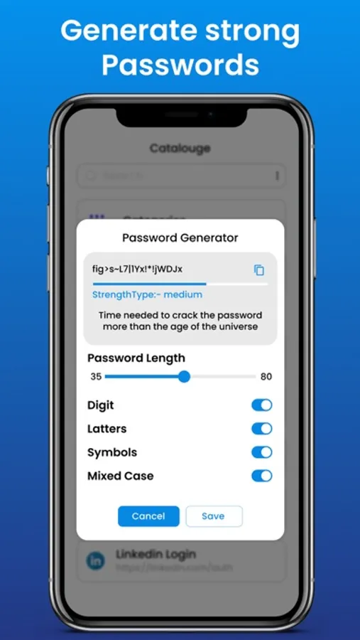 Check if your passwords are strong and easily create new passwords or change weak passwords to strong ones that are more difficult to crack.