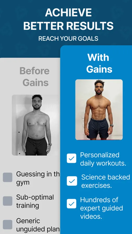 Gains combines leading fitness research, input from certified personal trainers, and constant feedback from our community to deliver a solution that is effective, affordable, and practical.