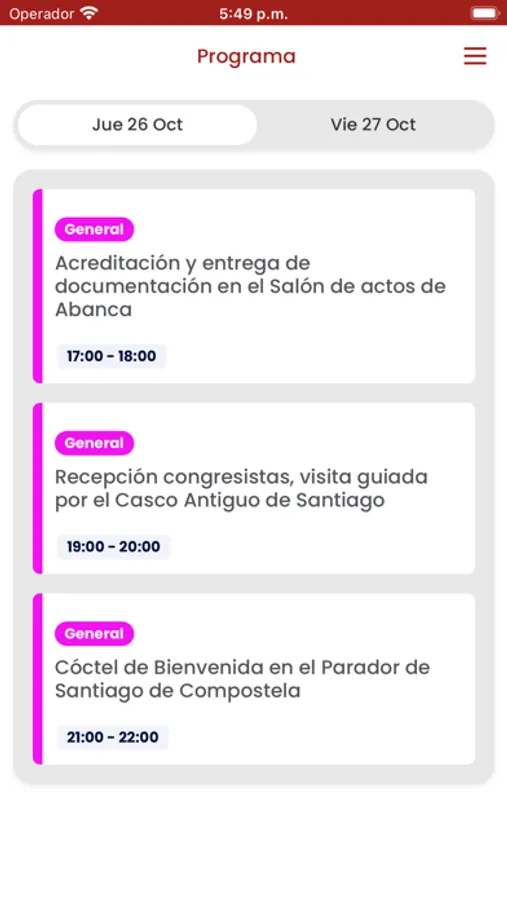- Todo el programa actualizado en tiempo real, organizado por fecha, hora y modalidad