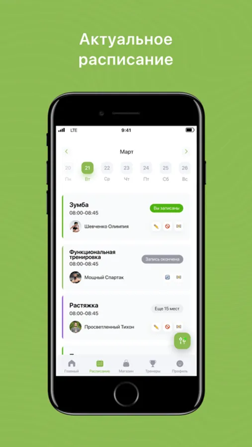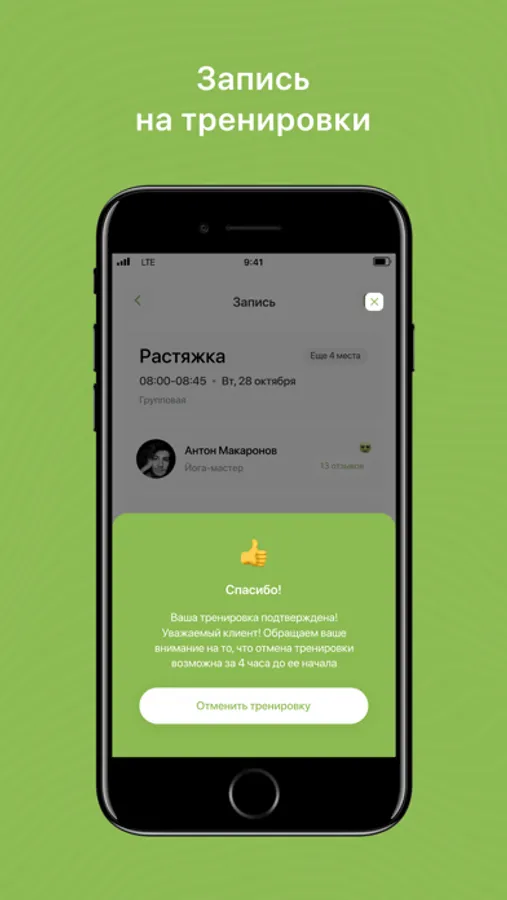 Получать PUSH-уведомления о предстоящей тренировке за 3 часа;