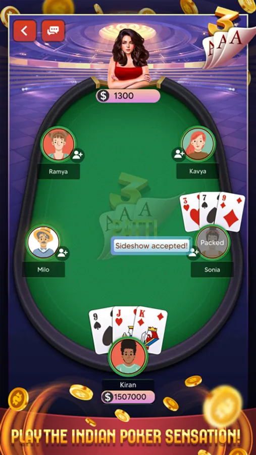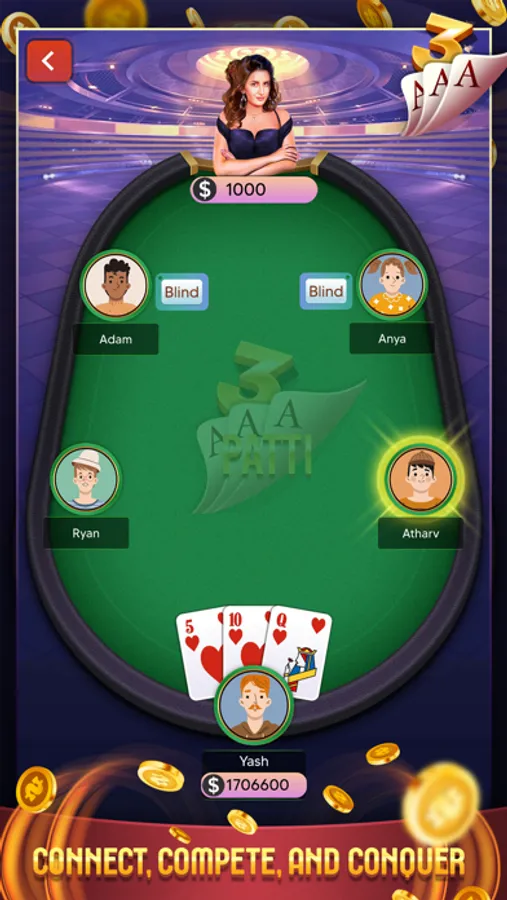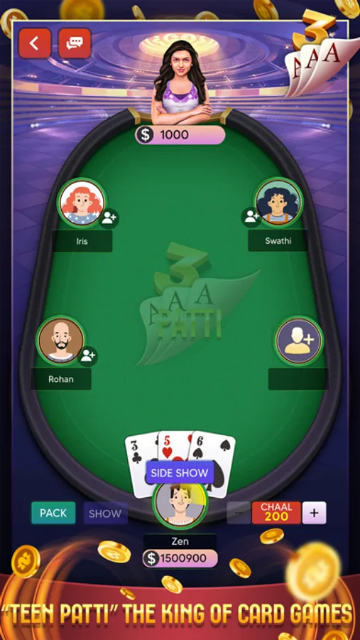 Join our game and immerse yourself in vibrant rooms filled with millions of players, all engaging in thrilling online Teen Patti matches.