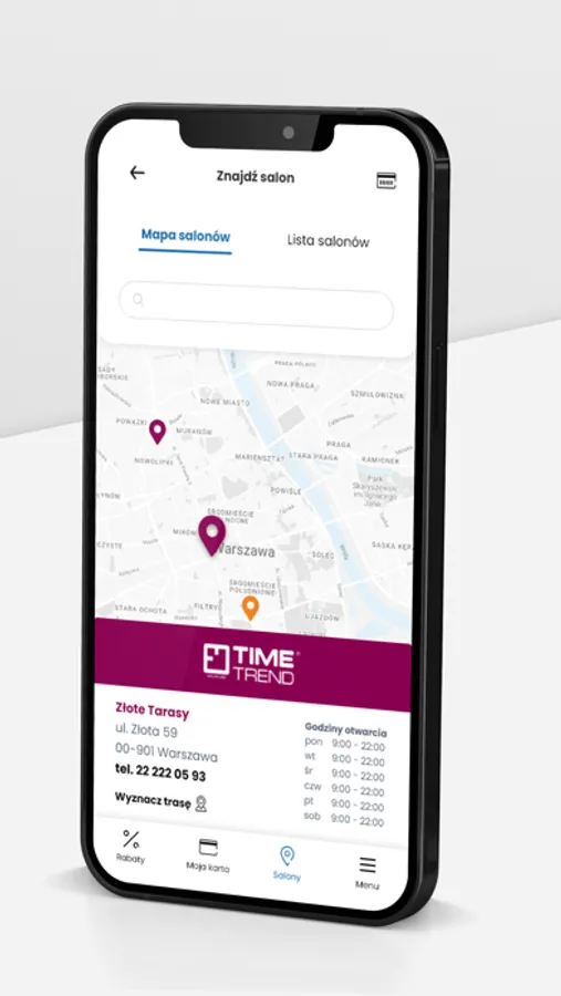 4/ pozwala na wyszukanie listy salonów sprzedaży na mapie. Dzięki intuicyjnej, interaktywnej wyszukiwarce Uczestnicy programu mogą odnaleźć salon sprzedaży w ich okolicy, zapoznać się z godzinami otwarcia, zadzwonić lub nawet wyznaczyć trasę.