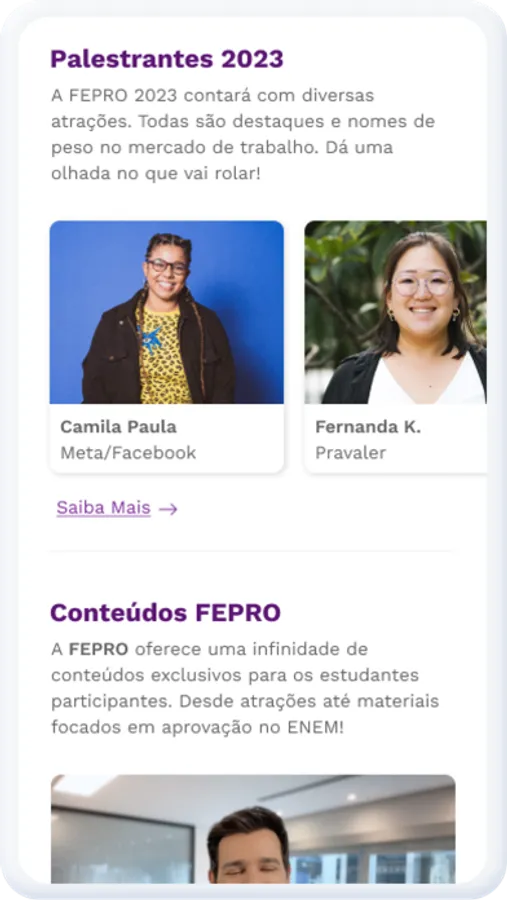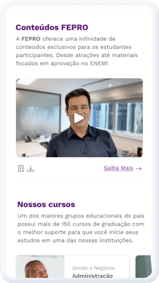 Esteja um passo à frente no início de sua carreira e faça o download agora para se conectar, aprender e encontrar o caminho certo na FEPRO.