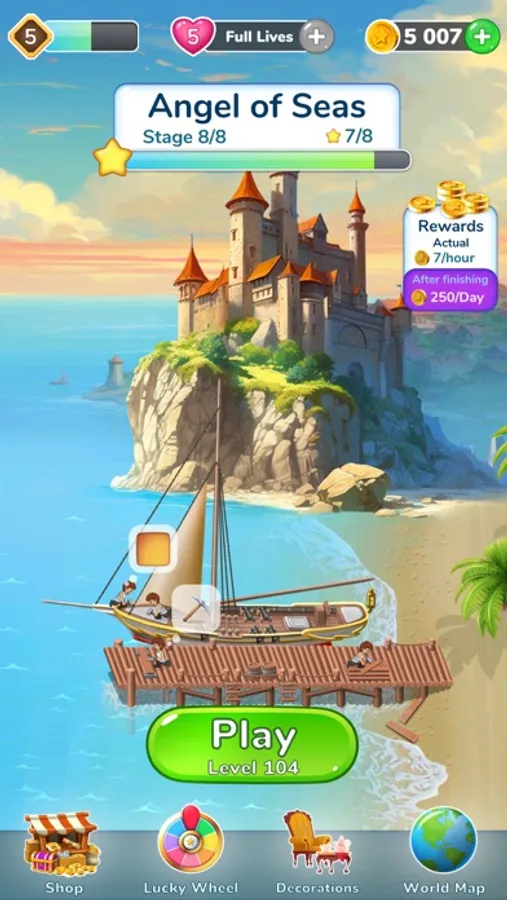 Match jewels and diamonds to create decor that will make your city even more beautiful. Complete match-3 levels to unlock decoration items and earn rewards, progressing through the game while building ships and boats.