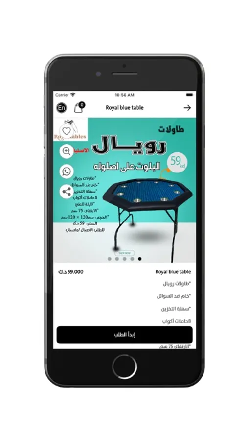 In the Royal Tables application, you find tables that have a modern look with a unique and distinctive character. You will find our user interface smooth and easy to deal with, as all you need to do is: open the application, browse our distinctive designs, choose what meets your request, include it in your purchases in the basket of products, then complete your purchase information, and finally we get to determine the mechanism of receipt and payment method that suits you.