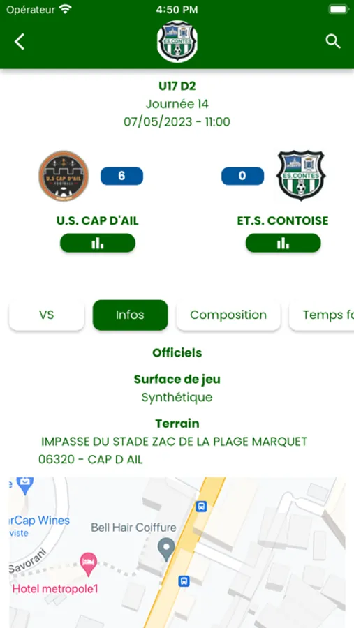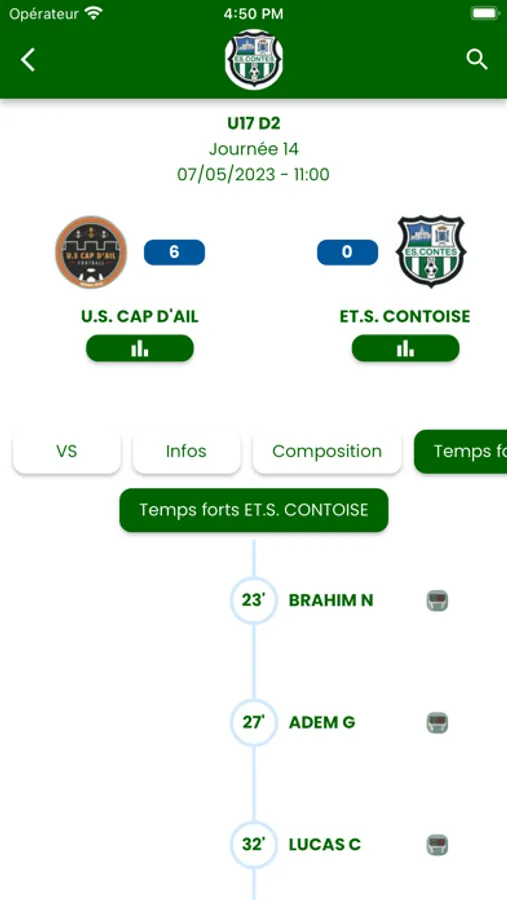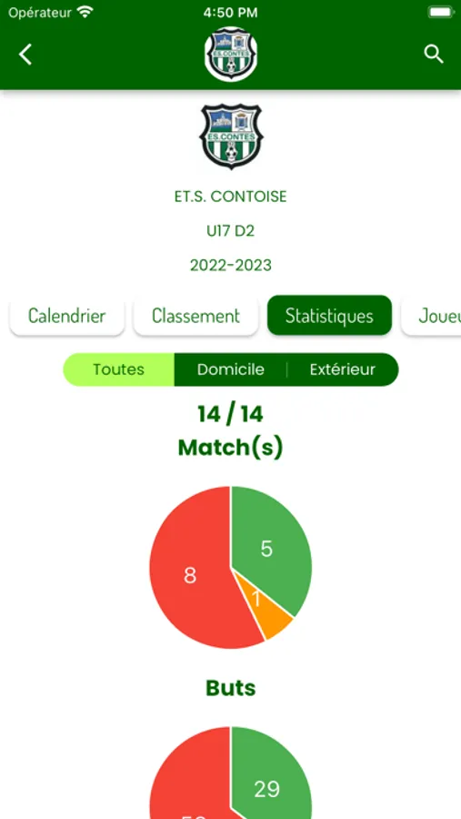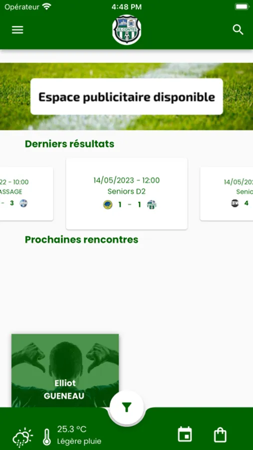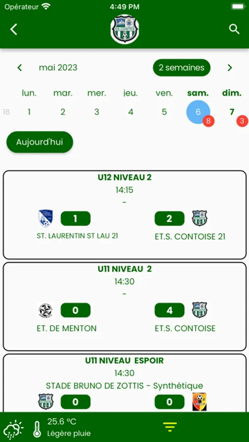 Avec l'App de l'ES Contes, tu accèdes aux résultats, calendriers et classement de l'ensemble des équipes du club.