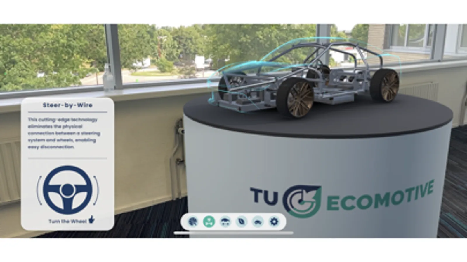 Explore intricate 3D models of eco-friendly vehicles, designed and built by the talented students at TU/ecomotive. With the support of Innovam and the power of AR, you can examine components up close, and gain an understanding of their innovative features.