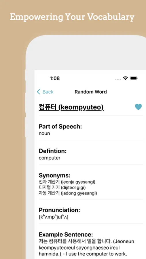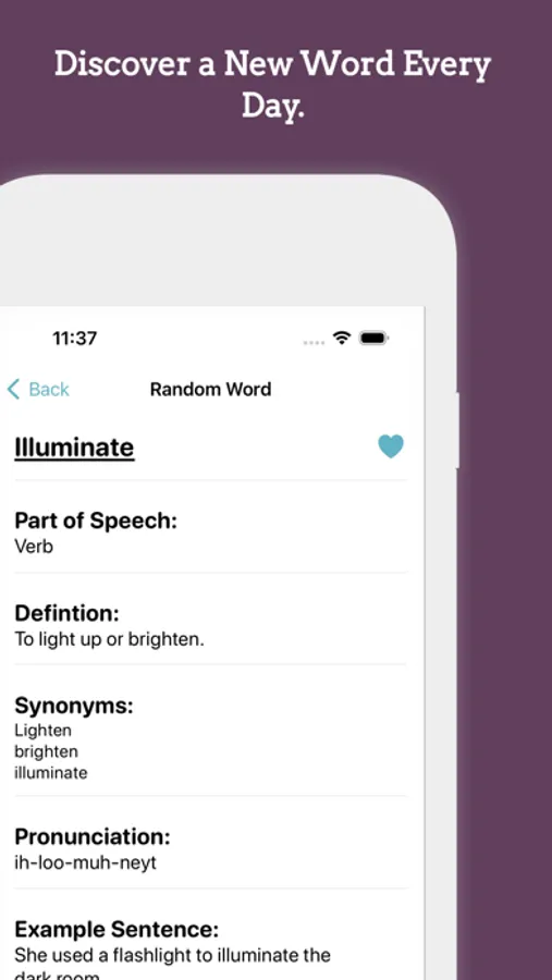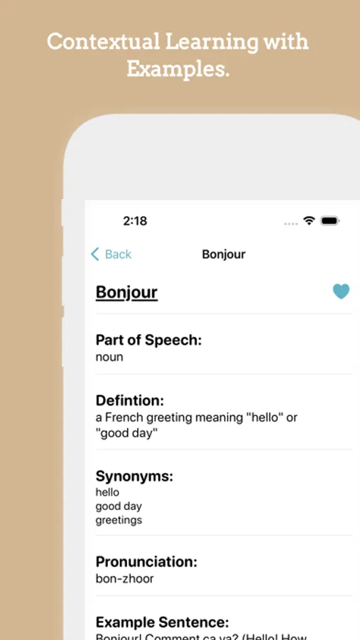LEARN EVERYDAY: Discover a new word every day in your chosen language. Each word comes with a clear definition, pronunciation guide, and an example sentence to ensure you fully grasp its meaning and usage.