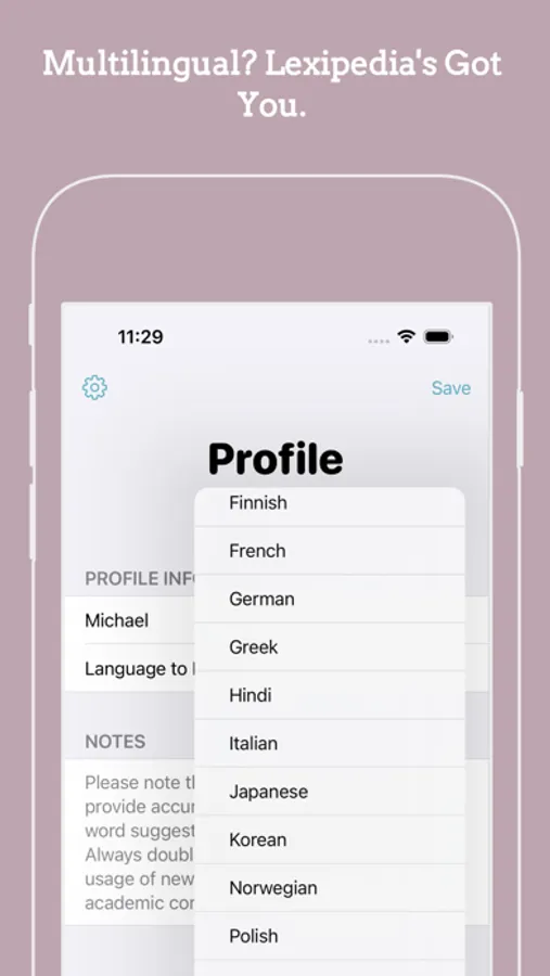SEARCH WORDS: Curious about a particular word? Use Lexi's search function to find out its definition, synonyms, and an example sentence. It's like having a pocket-sized multilingual dictionary!