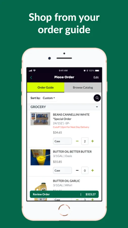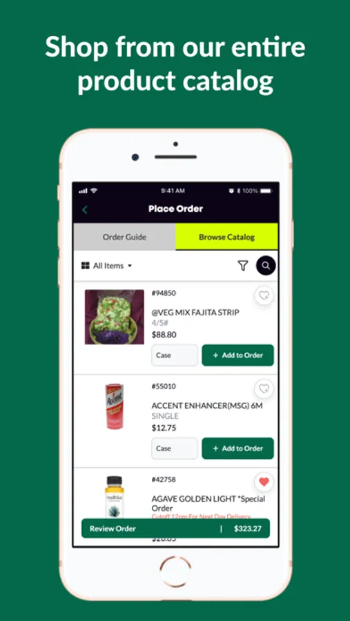 * Explore our extensive product catalog with item photos and detailed attributes like nutritional info.