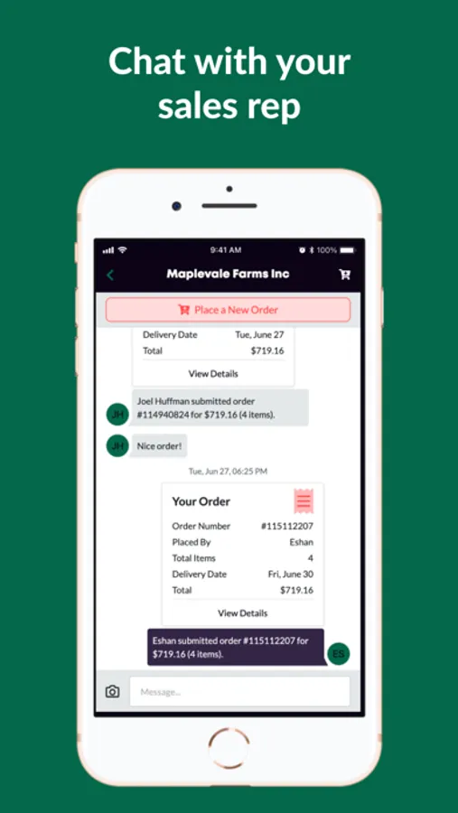 * Stay connected with your sales rep and the Maplevale team through in-app chat.